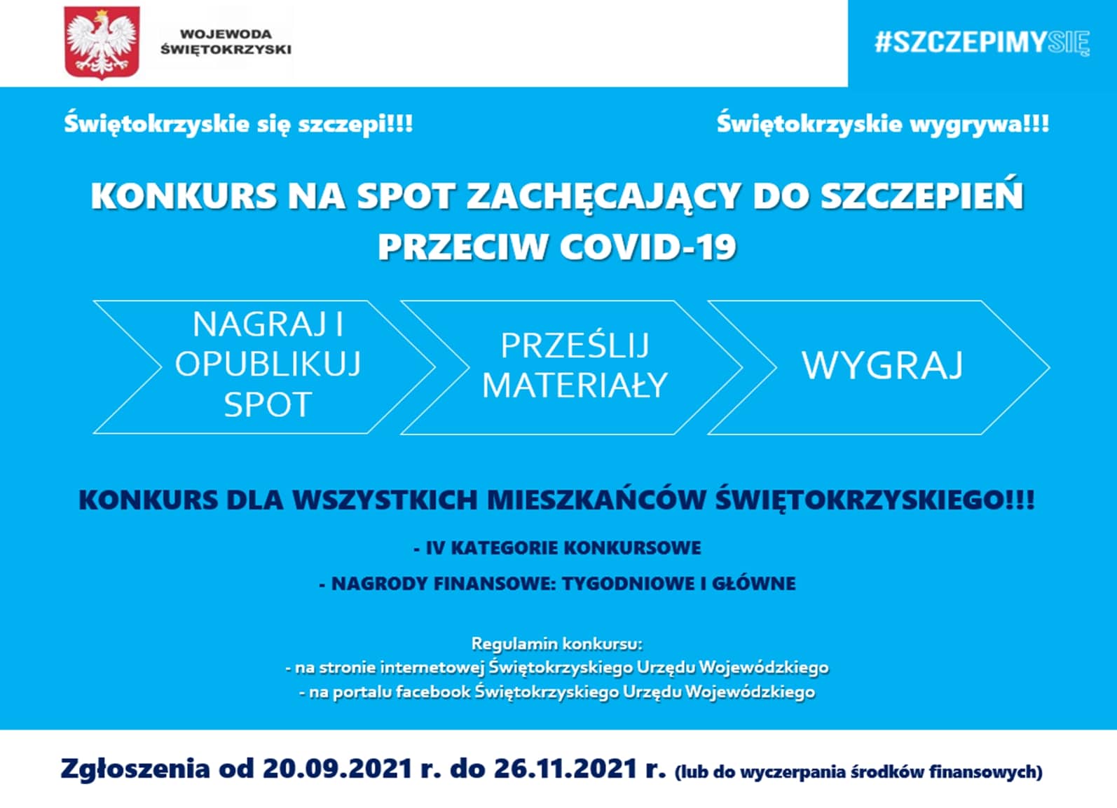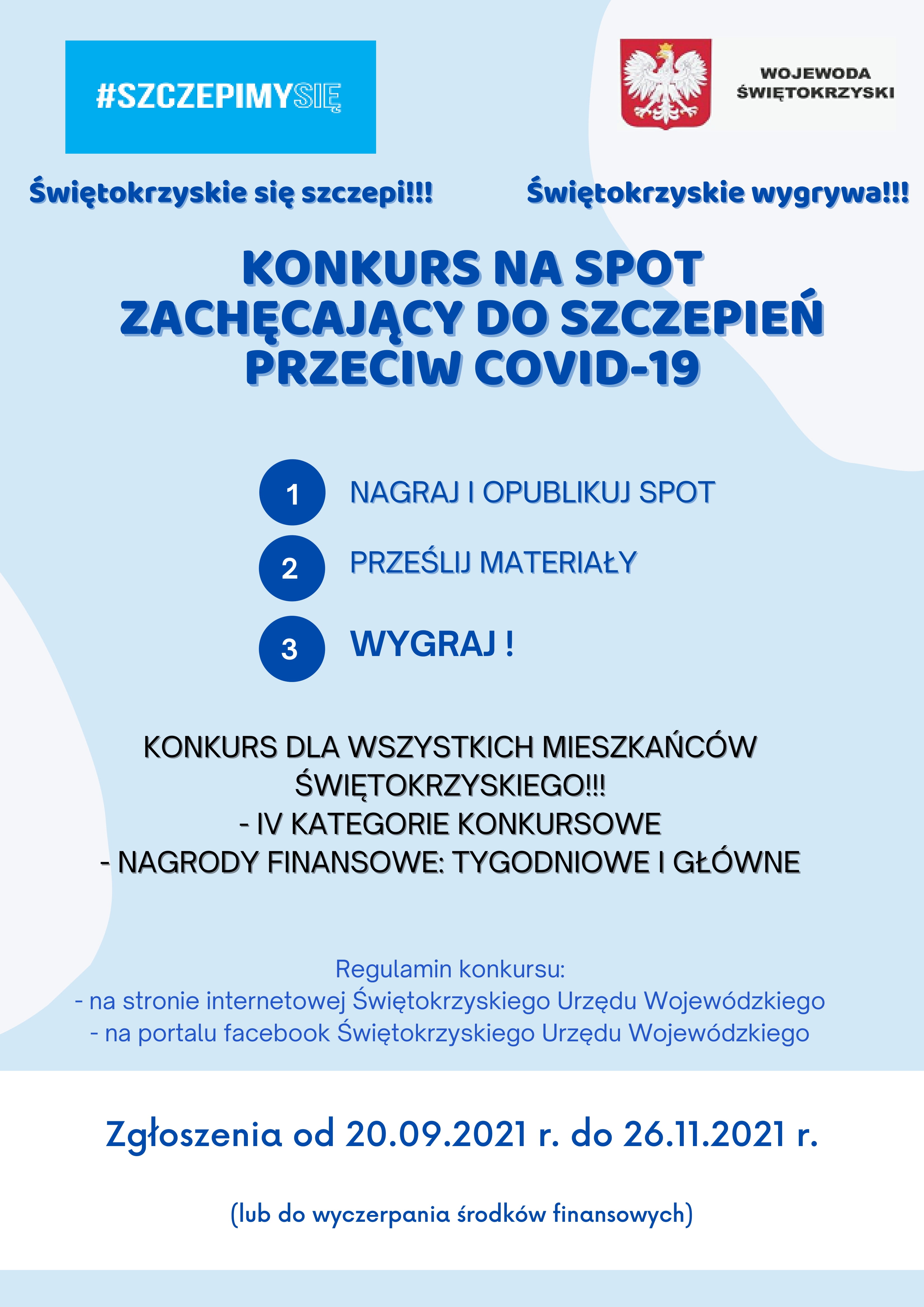 Wojewoda Świętokrzyski zaprasza do udziału w konkursie na spot/materiał filmowy zachęcający do szczepienia i informujący o korzyściach szczepień przeciw COVID-19.